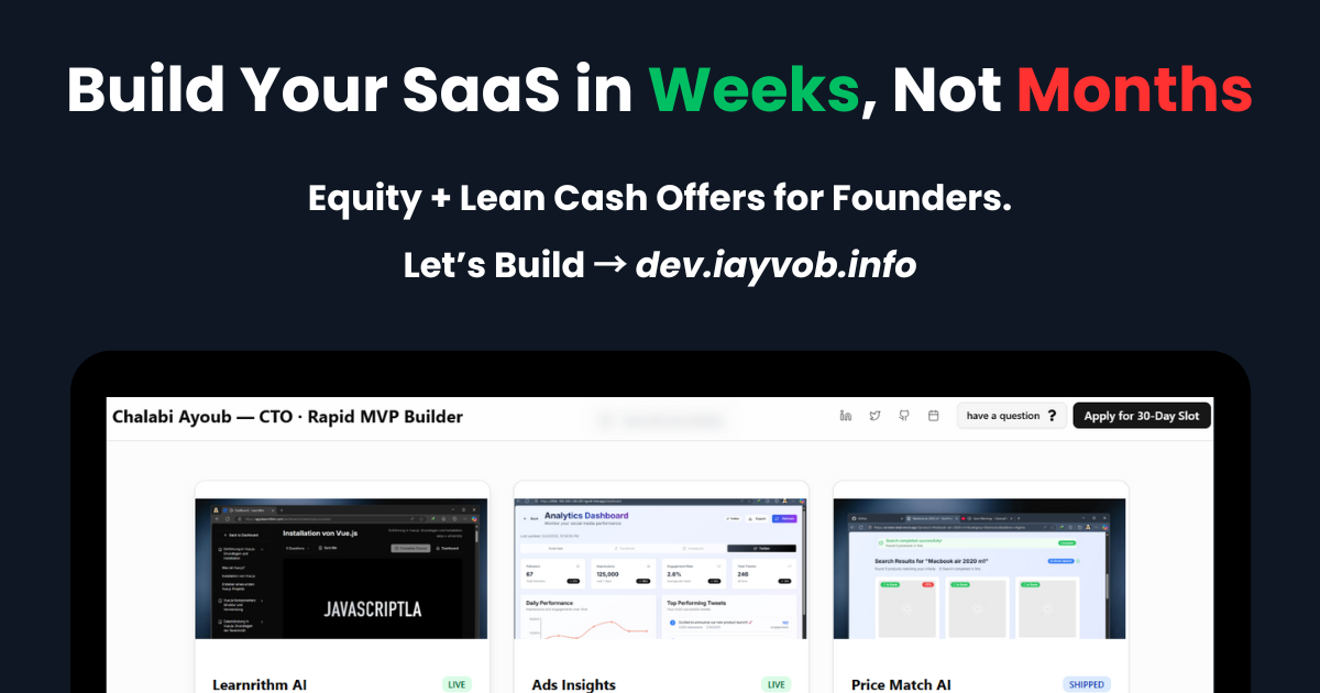 I build launch-ready SaaS & AI MVPs. Cash + equity or flat fee.